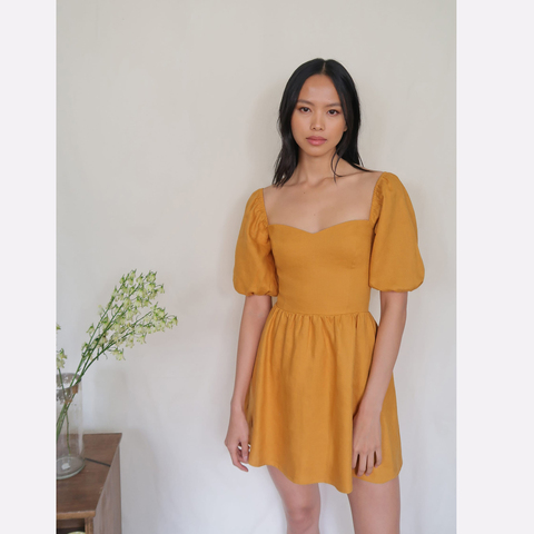 Robe de princesse bouffante en lin, à col carré, taille fine, jaune et blanc, article très mignon, tendance